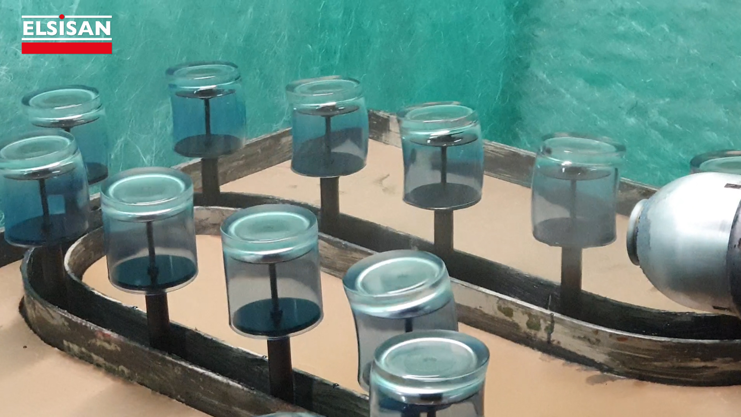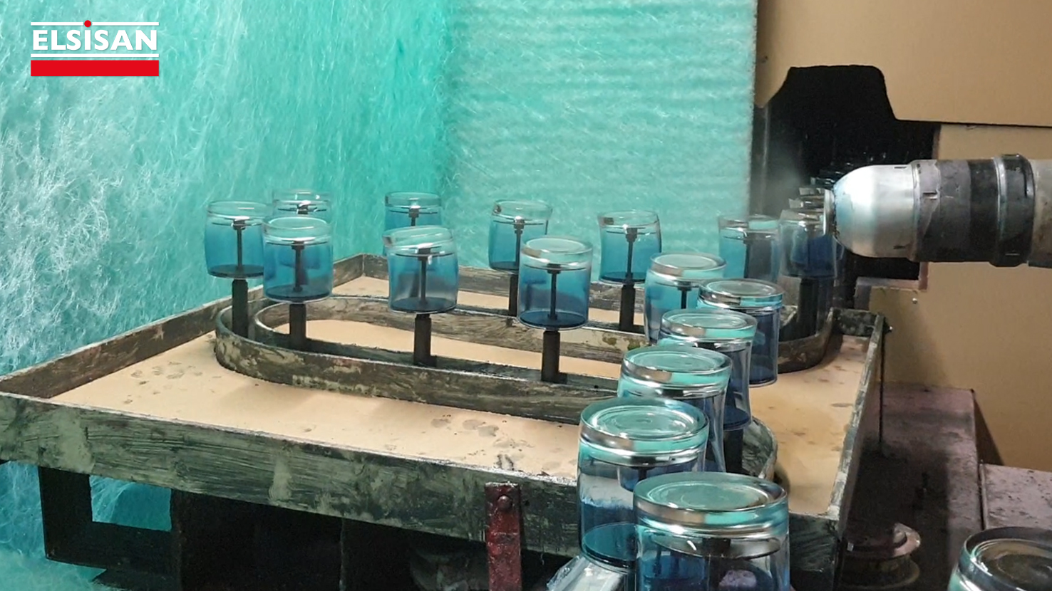 Among the paint lines projects we have done for the glass industry is the spray painting line that applies automatic electrostatic wet paint to glasses.