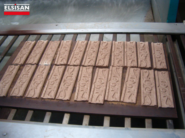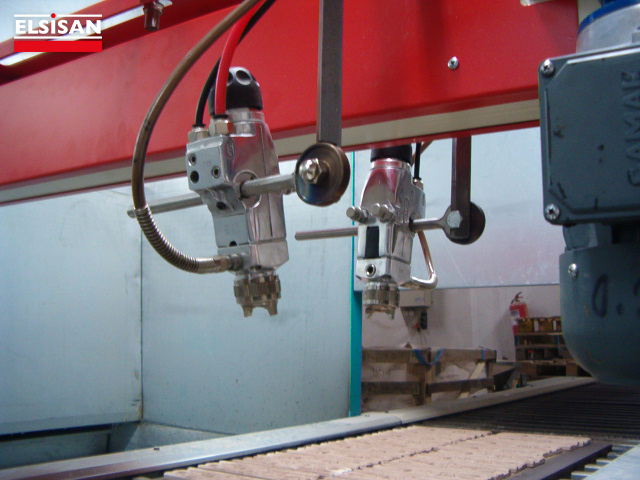 This compact flat bed machine is used in spray application to ceramic parts. Parts are spray coated with ceramic glazing agent.