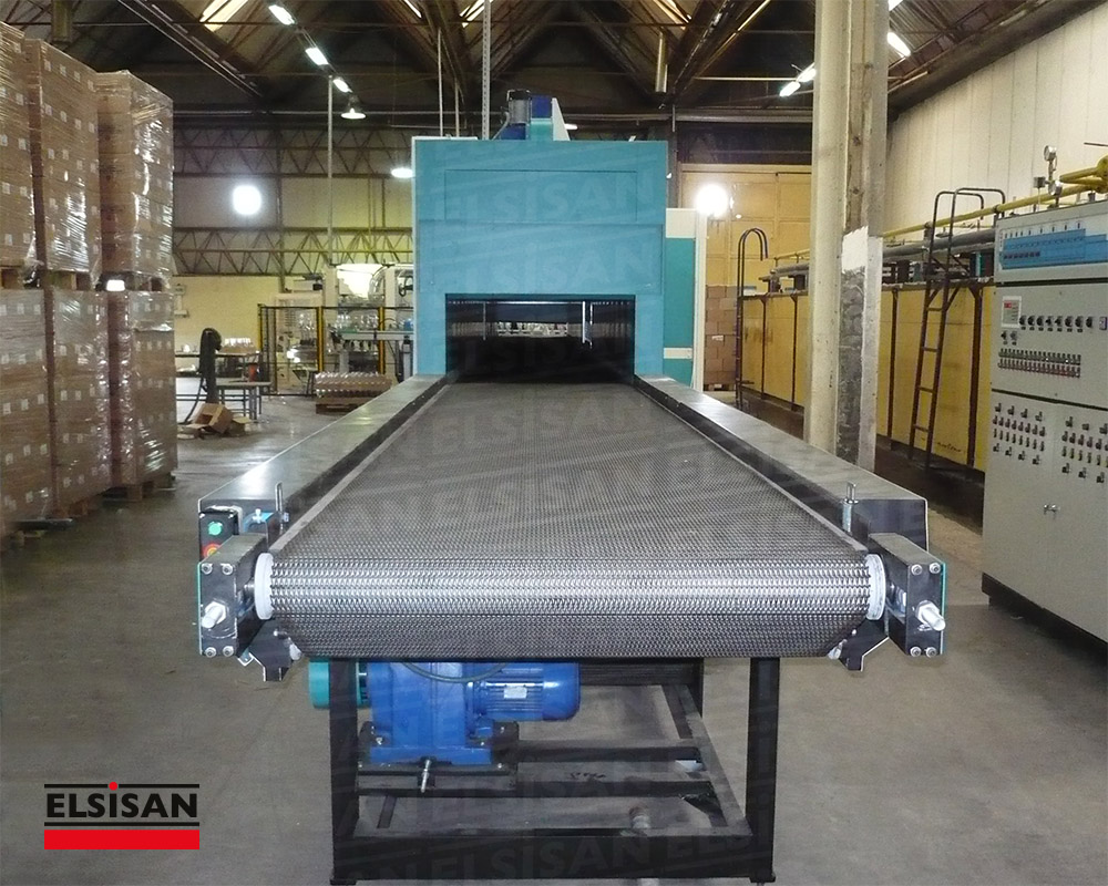 They are drying ovens placed to the end of the paint lines with the aim of dry the materials. It is manufacturing as a wire belt or PVC belt model according to the drying temperature. Dimensions of the oven are determined during the design process, connecting to capacity. Heating of the tunnel type oven conducted by electricity or natural gas. All electrical equipment controlled by PLC. Belt speed sets by the inverter to drying the material in the desired quality. If requested, a cooling tunnel can be added to the exit of the oven for cooling the materials quicker.