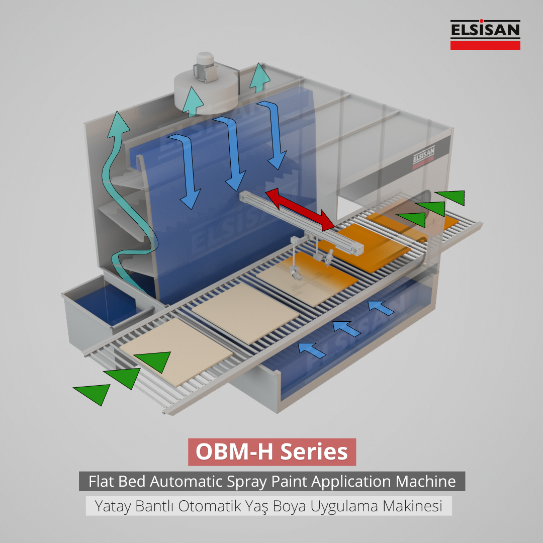 Automatic liquid paint machine provides automatic painting to small-sized metal, plastic and glass products for high production numbers. With its compact structure, it can be installed in small areas and lowers investment and operating costs. The materials lined up on the apparatus in the loading zone pass through the surface preparation section in accordance with the process, are cleaned from the surface dust by antistatic air, if necessary, flamage application is made and they reach in front of the robot in the painting booth. Paint is applied to the rotating parts with a 2-axis robot. Then, it is circulated in the drying oven for the specified time and brought to the unloading section. All these operations are done automatically with the PLC system on the control panel. Different methods can be prepared and saved according to each different piece, thus preventing time losses and errors.