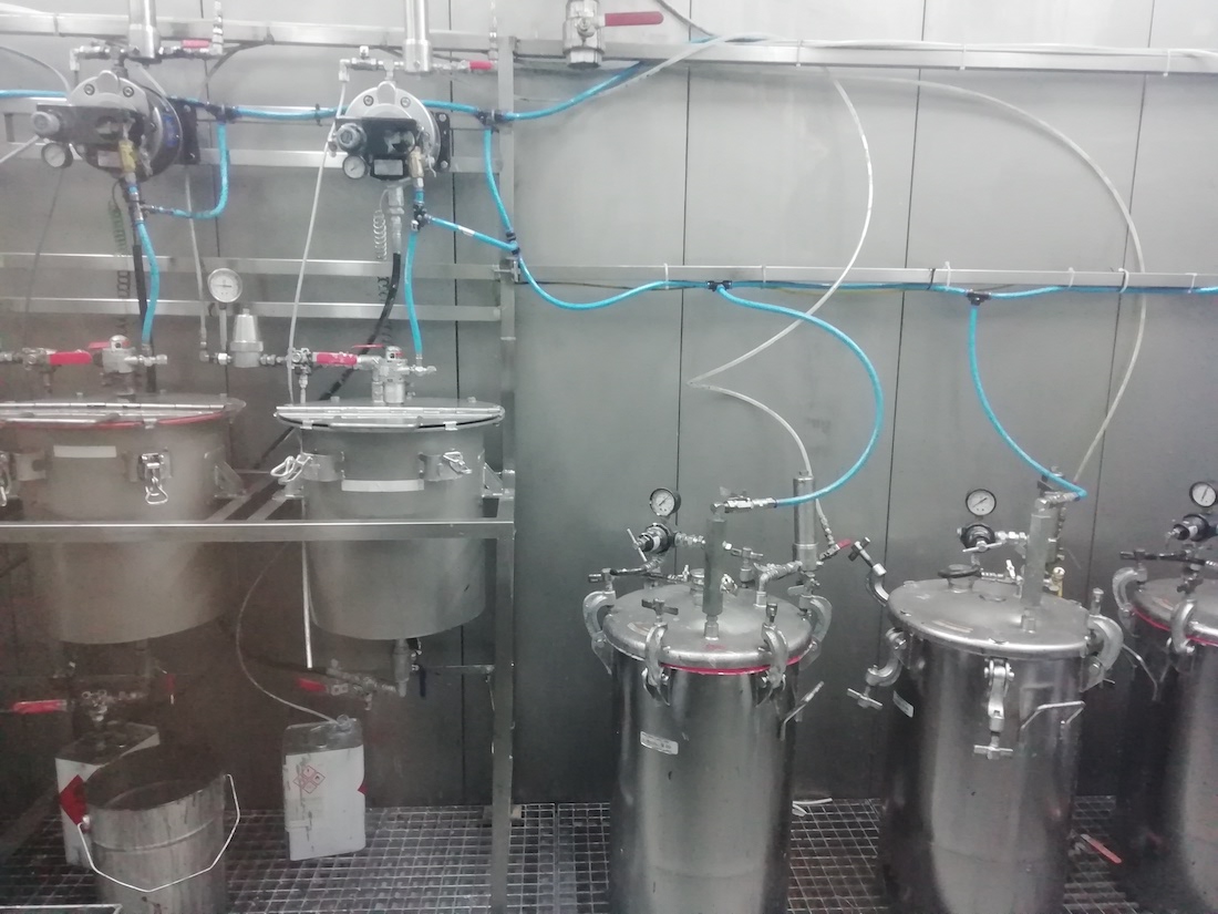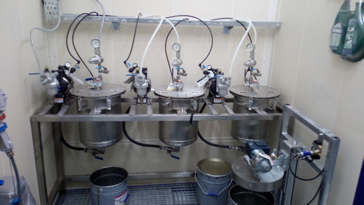 Pump, dosage and color block groups feeding the spray guns in liquid paint facilities should be located in separate rooms. This room is also protected against environmental pollution and fire hazards. Due to the exhaust fan in the room, solvent accumulation inside is prevented. In necessary situations, the viscosity of the paint waiting in the tanks is kept under control by feeding with conditioned air.