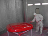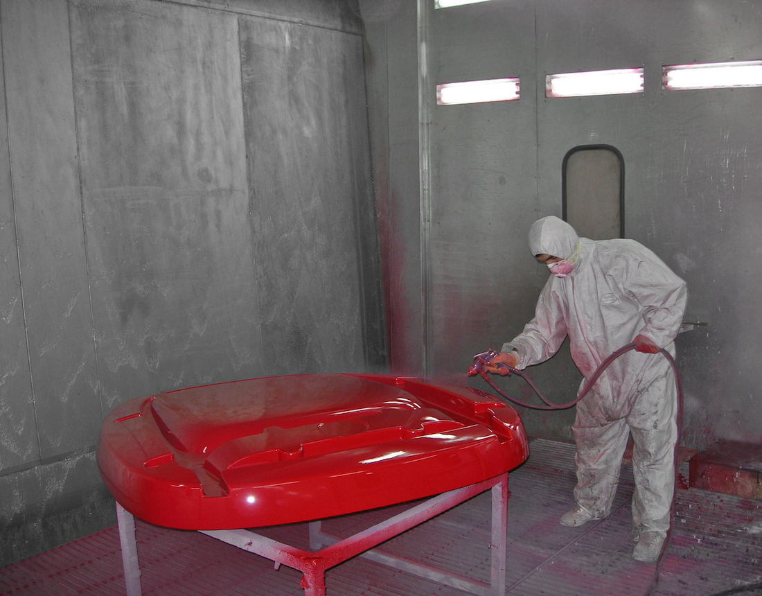 In these booths, filtration is done by water. The water curtain in the booth catches the first paint particulates coming out of the gun and lowers them to the pool. However, overspray which floats in the air and does not touch the water curtain move towards the exhaust fan, the spray nozzles and separators here capture these particulates, by that way paint particulates are not thrown from the chimney. At the same time, a suitable and clean environment provided in the booth in terms of employee health and workplace safety.