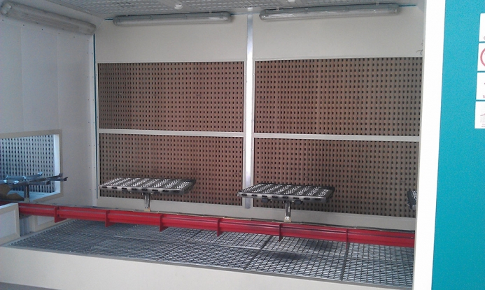 These are the facilities designed to cover products such as trays, pots, pans used in the kitchen industry with non-stick surfaces. It consists of washing, drying, application, pre-drying sections and has a method similar to wet paint application. It can be applied manually or by robots in booths with water curtains or paper filters.\
