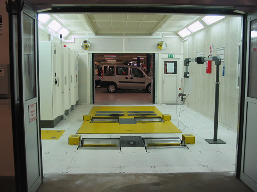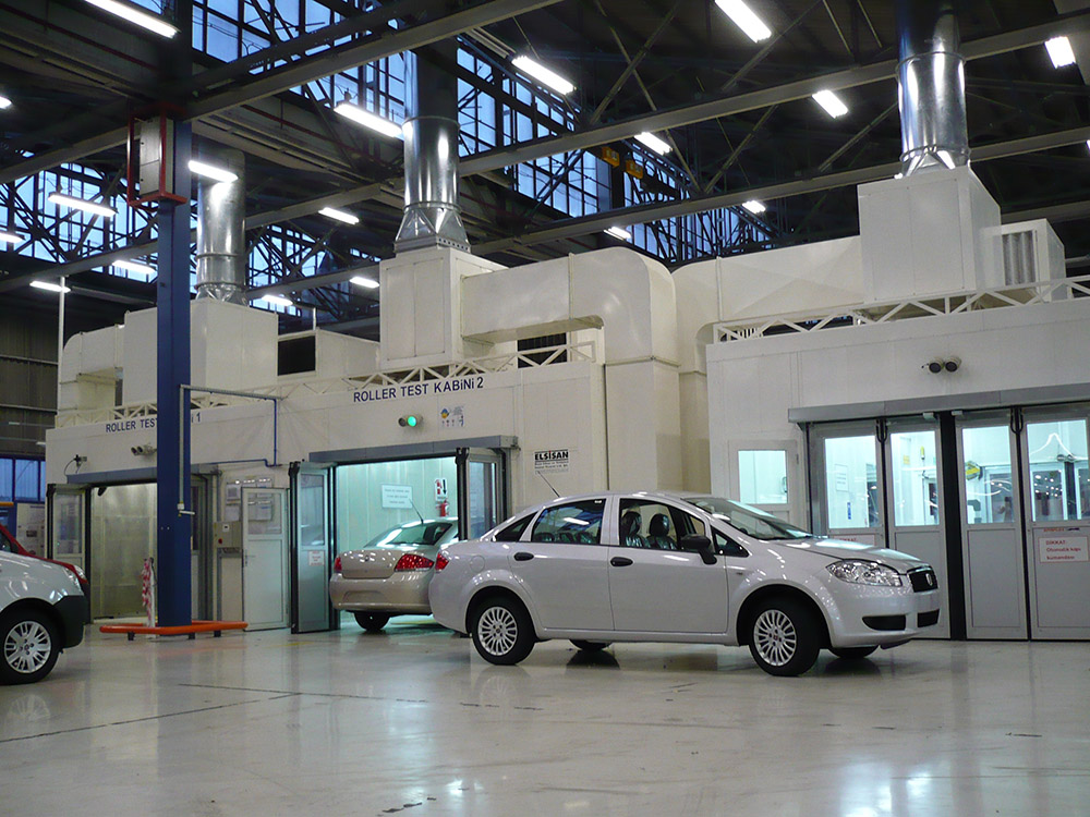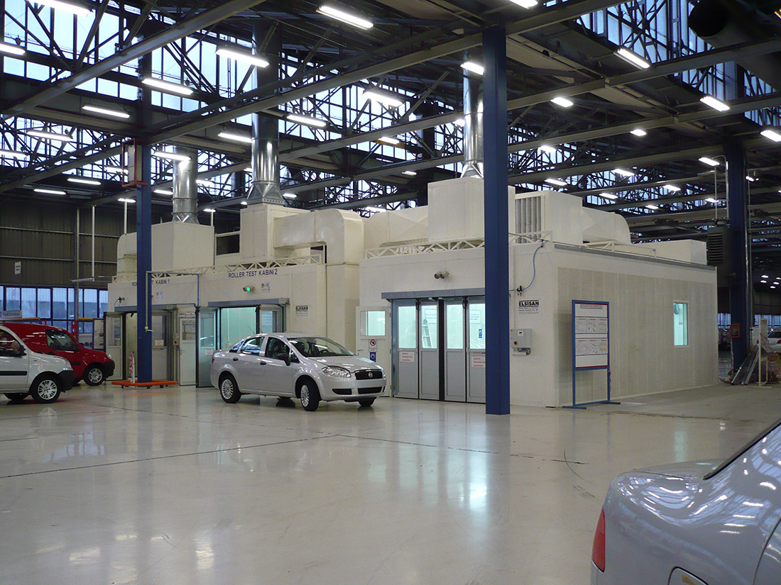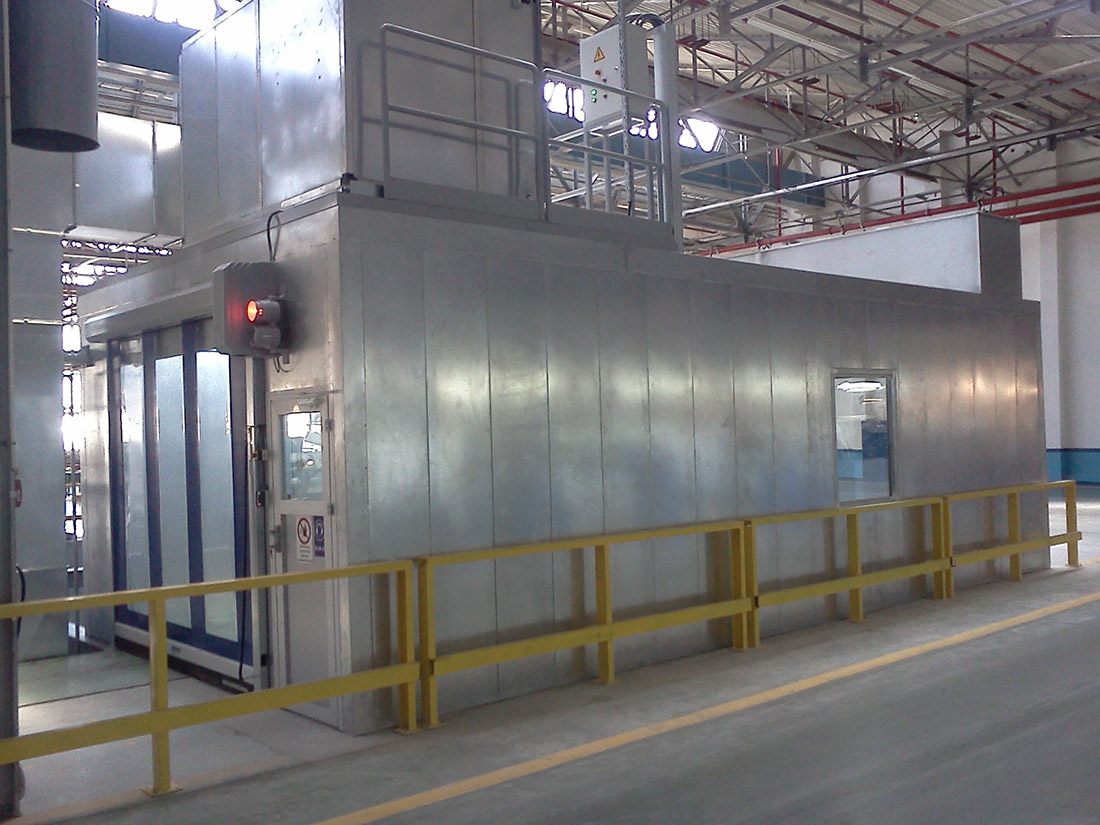These are the cabins in the automotive sector where the final controls of the vehicles are made. The sound generated by the vehicle operating at high speeds in the cabin absorbed there. Sound leak is prevented by insulated panels. In addition, the gasses coming out of the vehicle exhaust are filtered through air ducts and fans made in the bottom of the cabin and transmitted to the atmosphere as an environmentally friendly state. Clean air as much as exhausted air is pressed into the cabin.