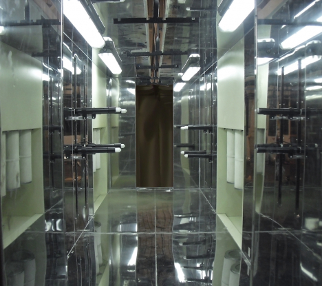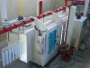 A powder collection depot with a sieve is located at the base of the booth. Overspray falling onto the sieve is automatically recycled: the collected powder is sent back to the guns via injectors, enabling efficient paint reuse and reducing waste.