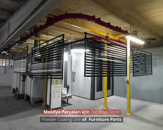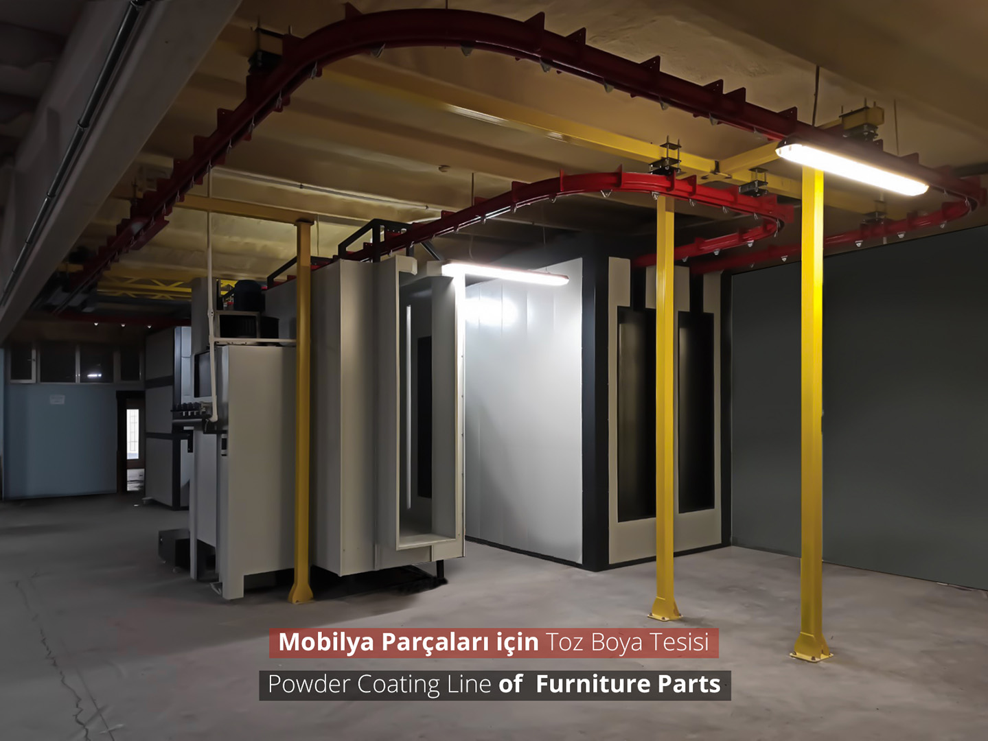 Powder coating lines, which are consist of pretreatment, drying oven, powder coating booth and curing ovens, are designed depending on the needs of customers.