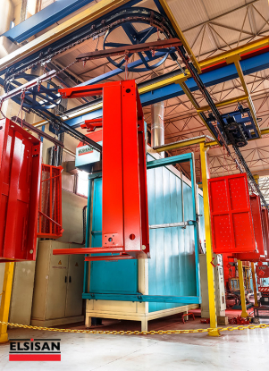 5. Worker lifting platform: If the painting process in the cabin is high positioned, and manual application is made, reaching the upper points could be difficult for the worker. In order to easier the application, a worker lifting platform has been placed. While the upper parts are painted, the worker can reach the desired height by pressing a button.